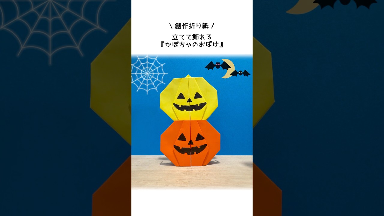 タイトル | 【折り紙1枚★ハロウィン】簡単!立てて飾れる 『かぼちゃのおばけ』 ※詳しい作り方はYouTube本編から♪ #折り紙 #ハロウィン #origami #halloween #shorts |